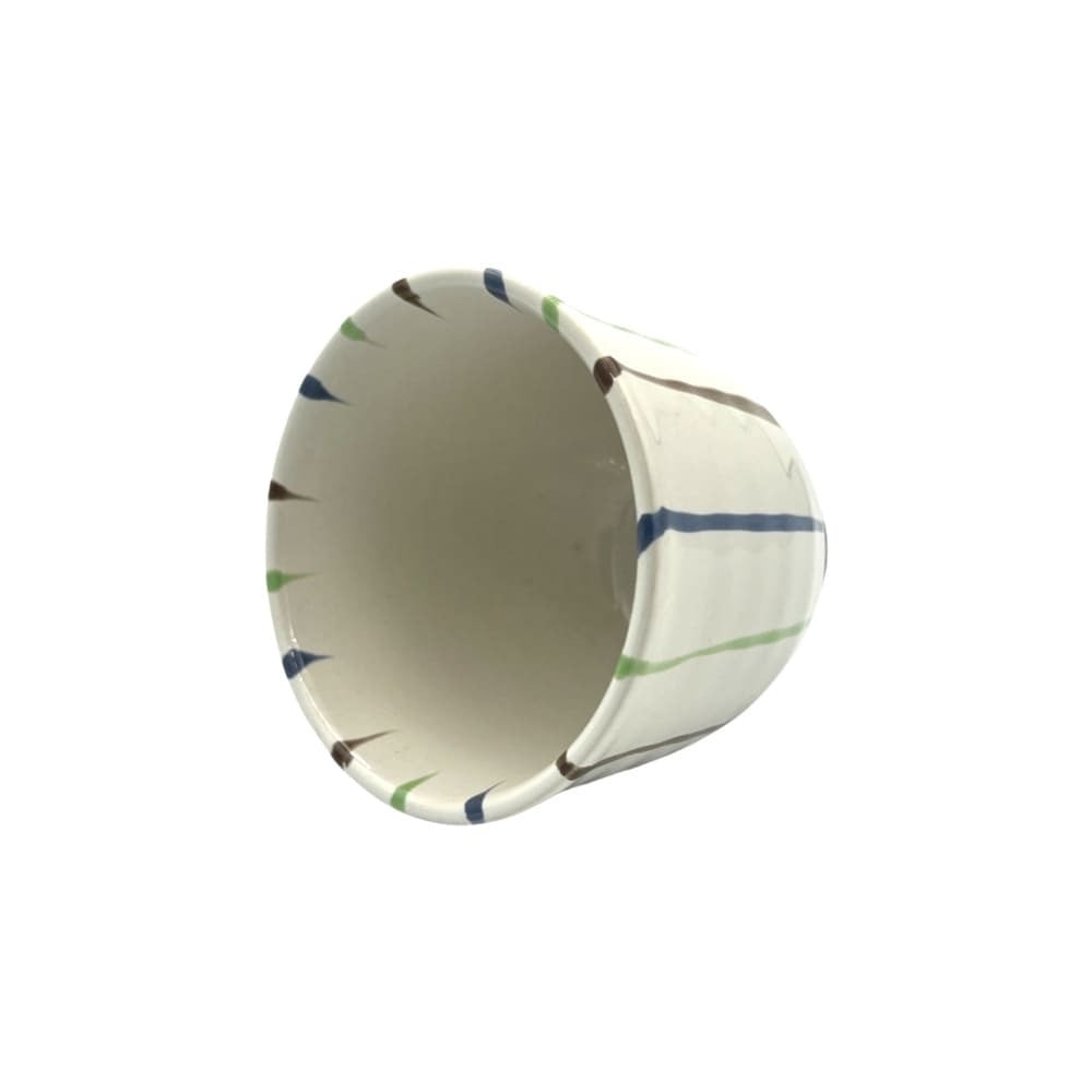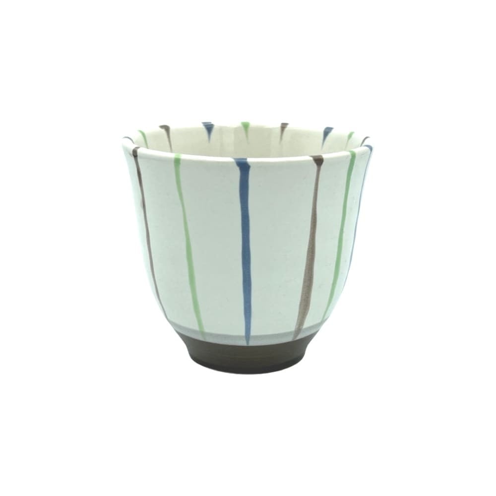 كوب ابيض بخطوط متعددة الالوان مصنوع يدويا من السيراميك الفاخر على النمط الياباني التقليدي بسعة 170مل